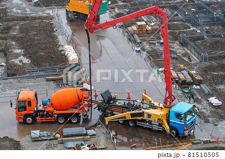 コンクリート トラックアジテーター コンクリートポンプ車 基礎工事 建築