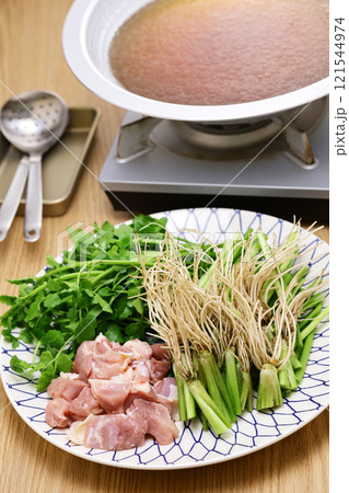 セリ鍋調理中
