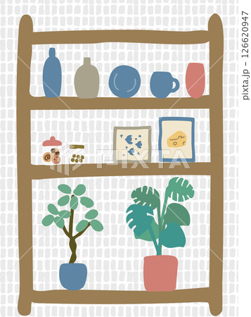 おしゃれなインテリア・棚・ディスプレイのイラスト