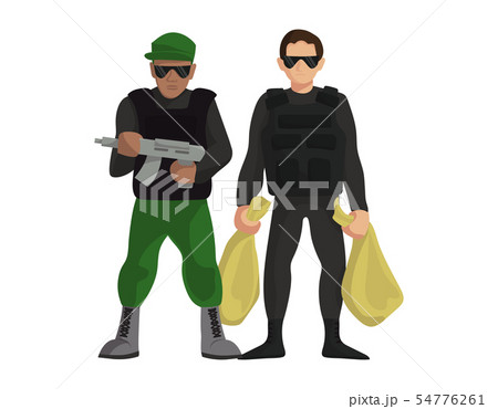 Security money collector guardian crime people with weapon standing vector illustration. Bank
