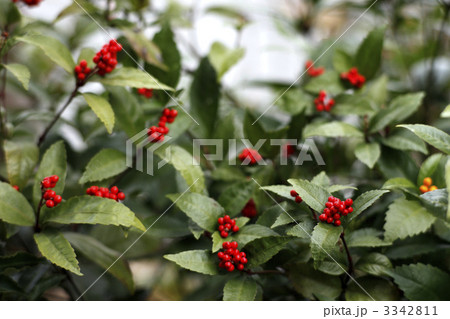 冬に咲く赤いセンリョウの実 (千両)冬、十二月