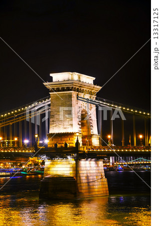ハンガリー・ブダペスト ライトアップするセーチェニくさり橋