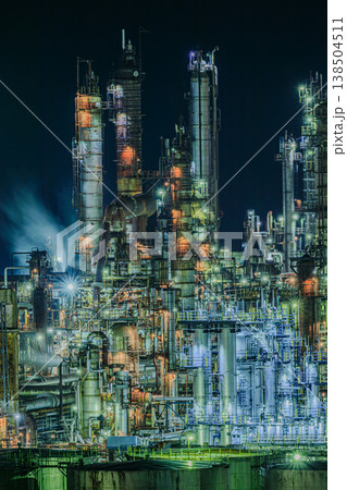 東燃ゼネラル石油和歌山工場の幻想的な夜景と配管美