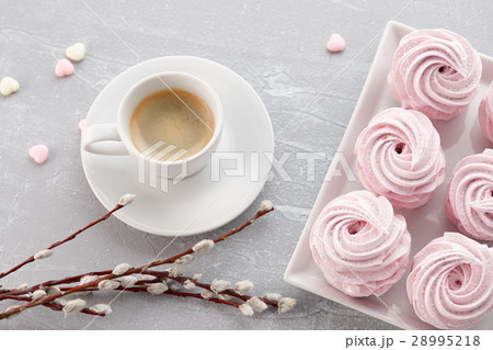 Cup of coffee with zephyr or marshmallow