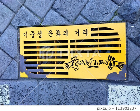 済州島・西帰浦市、イ・ジュンソプ通りの側溝蓋