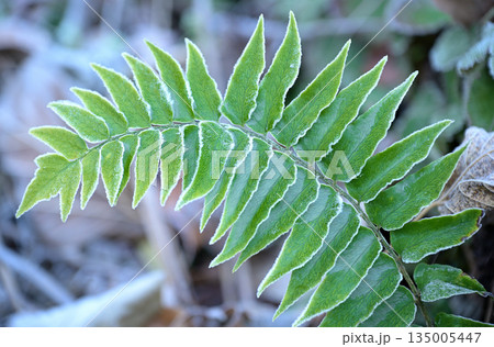 葉の裏側、薮に生え、蘇鉄のようにはを広げるシダのヤブソテツ