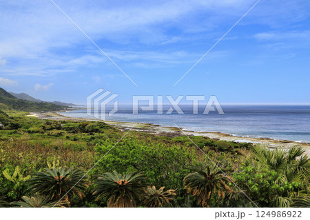蘇鉄とユリが群生する奄美大島最北端の笠利崎、鹿児島県