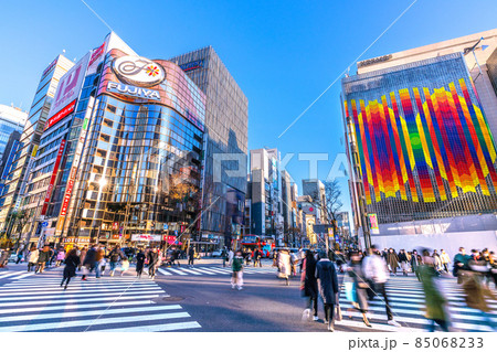 日本の東京都市景観 銀座駅や数寄屋橋の交差点などを望む