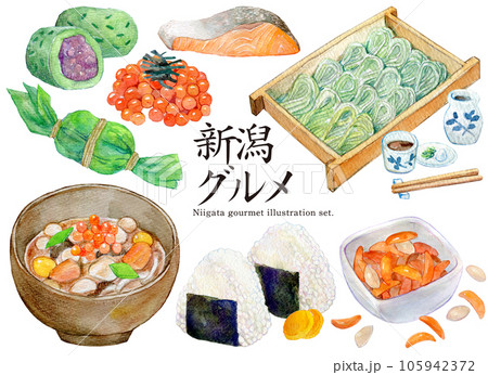 水彩イラストセット 新潟グルメ 新潟県