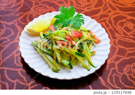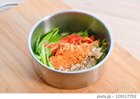 器にいれた胡瓜とトマトの細切り