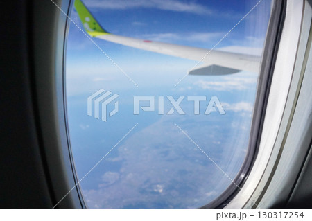 飛行機の窓から見た景色