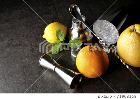 グレープフルーツやオレンジやレモンやミントを使ってシェーカーでカクテルを作る