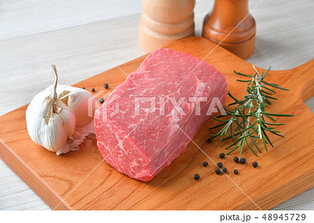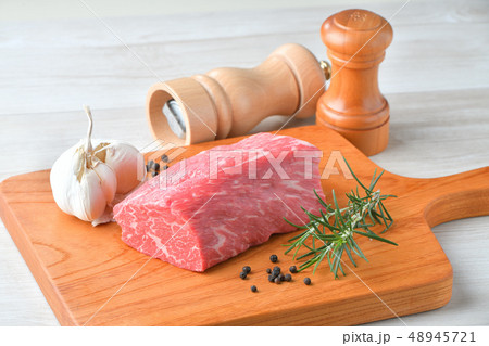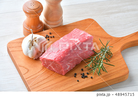 国産交雑牛の牛モモ肉ブロック(塊)、生肉、精肉の食材。