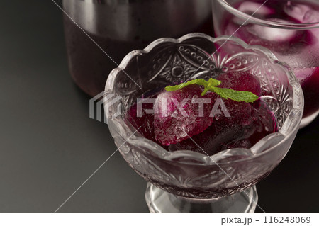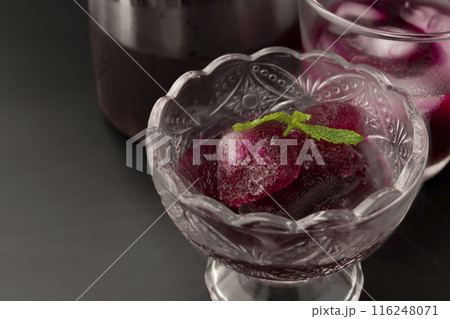 赤紫蘇のシャーベット 氷菓 アイス グラス