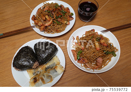 ソース焼きそばとおむすびの画像素材(写真・イラスト) 1ページ目