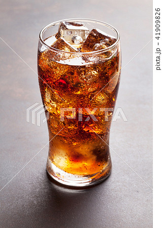 Refreshing glass of cola with ice