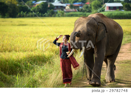 Asian people and elephant