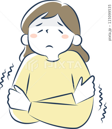 寒くて震えている女性のイラスト素材