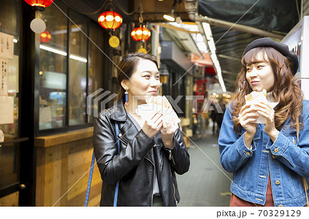 食べ歩きをする女性