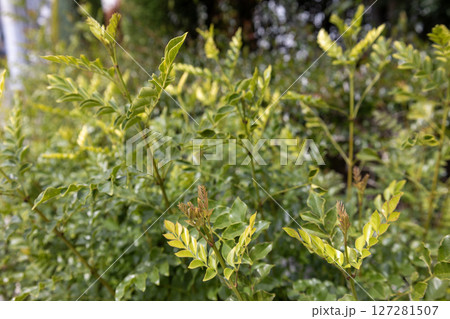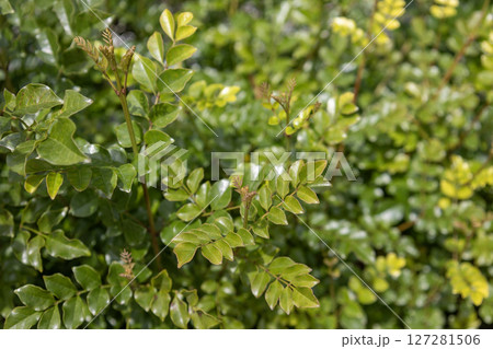 緑の背景/シマトネリコの葉