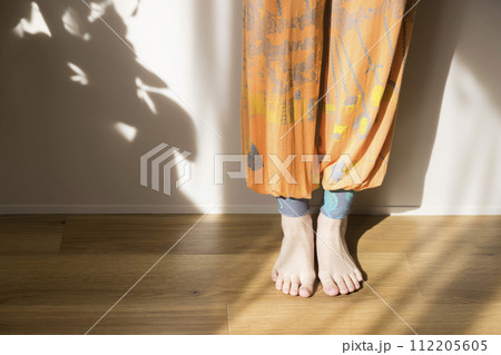 タイパンツをはいた女性足元