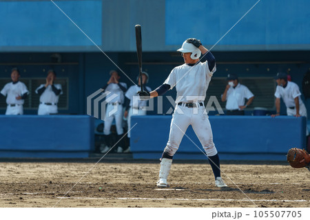 打席で構える左打者(高校野球)