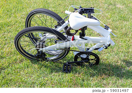 白い折りたたみ自転車_自転車のみ・無人・人無し_サイクリング・買い物