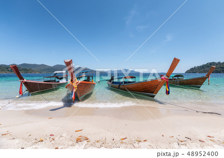 Thai longtail boats parked at the Koh Hong island in Thailand