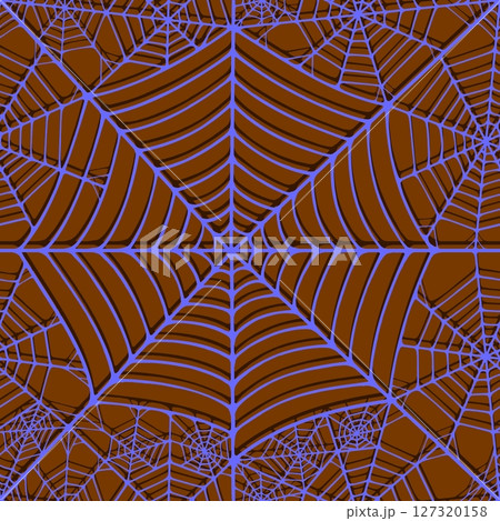 Seamless pattern with linear spider web design on color background.