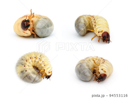 Group of of grub worms, Coconut rhinoceros beetle (Oryctes rhinoceros), Larva on white background. Bugs. Animals.