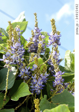 自然 植物 タイワンクズ、東南アジアから沖縄に分布する南方系のクズ、蔓を伸ばし樹冠を蔽います