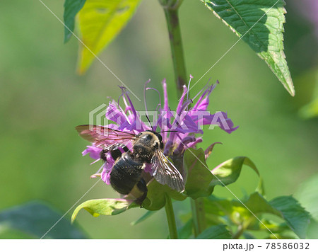 外来種タイワンタケクマバチ モナルダの花で大胆に吸蜜(盗蜜)
