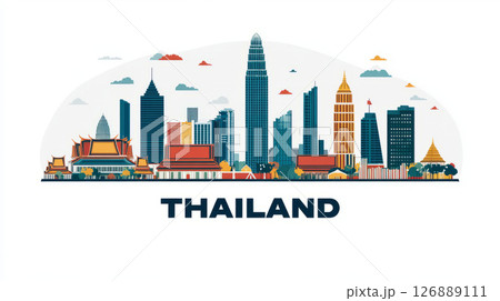 vibrant illustration of Thailand landmarks, nature, and cultural elements