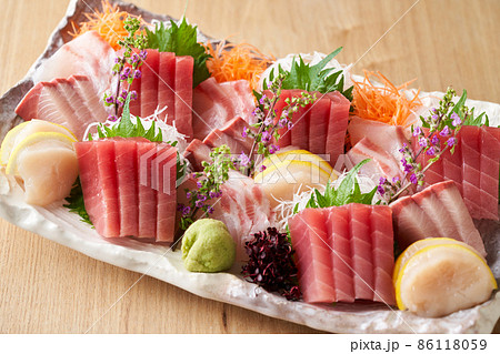 五島の新鮮な魚で造られた刺身盛り合わせ