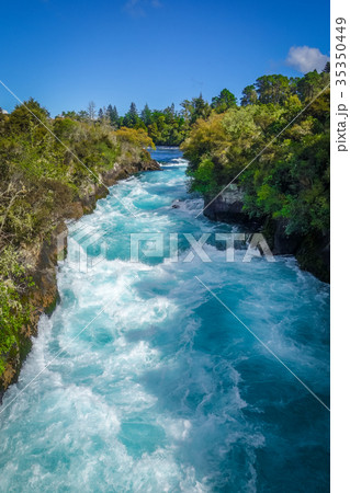 ニュージーランド タウポ フカ滝の下流からの眺め