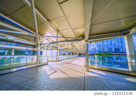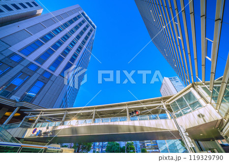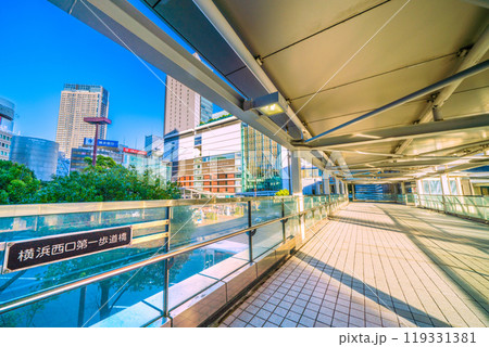 日本の横浜都市景観 10月。横浜駅西口の横浜西口第一歩道橋や横浜駅などを望む=1日