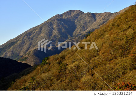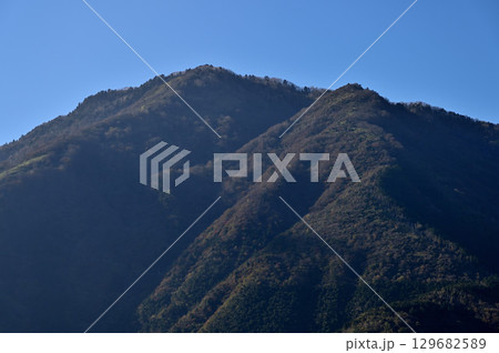御坂山地のパノラマ台から望む紅葉の天子山地のタカデッキと雨ヶ岳