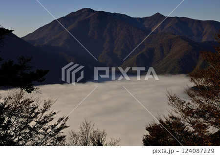 御坂山地 紅葉のパノラマ台から望む天子山地 本栖湖に架かる雲海