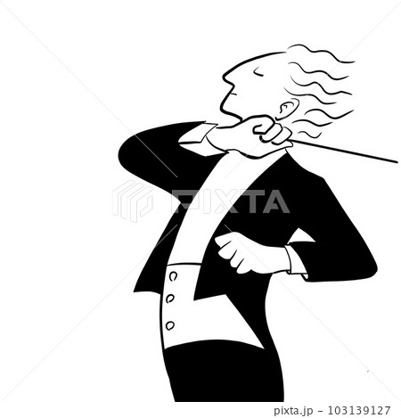 気持ちをこめて指揮をしている指揮者のモノクロのイラスト