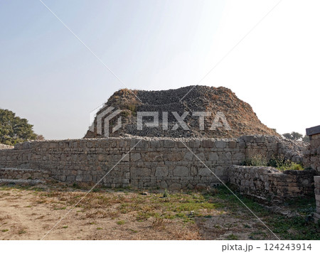 ガンダーラの東に位置するパキスタンのタキシラ遺跡にある2500年前のアショーカ王時代に建てられた仏塔