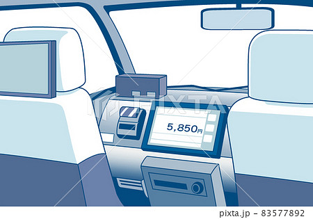後部座席から見たタクシー車内のイラスト(シート、メーター)