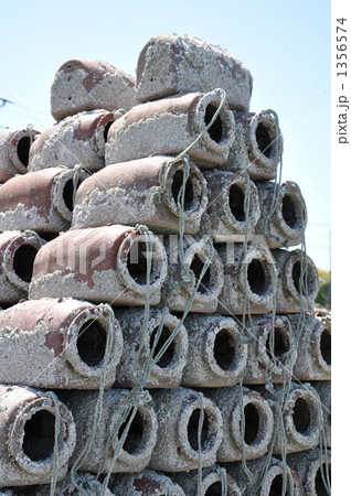 漁港に置かれたタコつぼ 漁港の風景