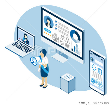 ネットを駆使して選挙活動をする女性立候補者 - スマホ ノートパソコン デスクトップパソコン