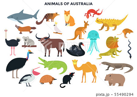 Animals of australia. Nature fauna collection. Geographical local fauna. Mammals living on continent. Vector illustration in kids style