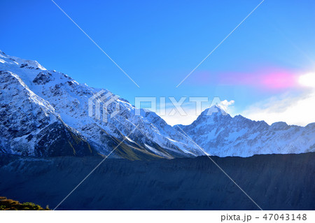 日の出を迎えた南半球のアルプスマウント・クックと国立公園