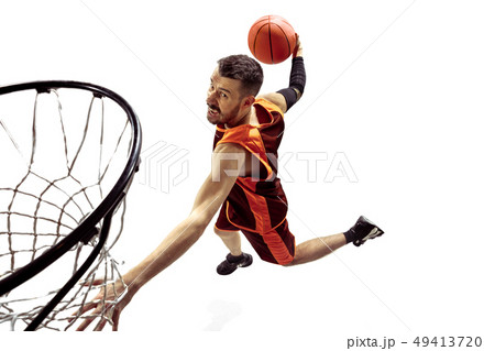 Full length portrait of a basketball player with ball