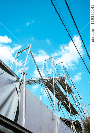 足場が組まれた住宅建設現場 c-2 高彩度コントラスト