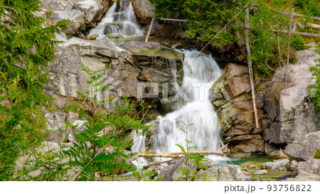 Waterfalls at stream Studeny potok in High Tatras mountains during summer, Slovakia