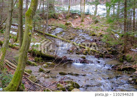 Small river in Strazyska valley in Winter. Tatra mountains in Poland, Europe