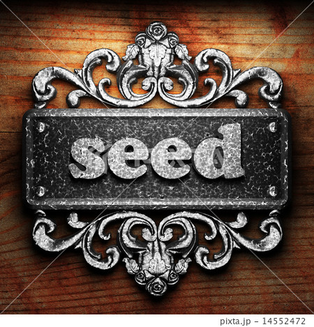 seed word of iron on wooden background